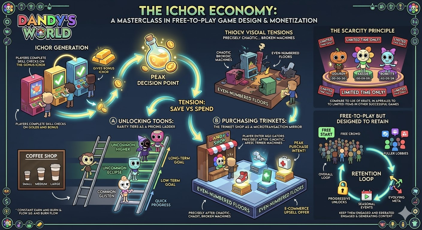 Most Dandys World players think of Ichor as just a resource — something you collect during runs and spend on new characters or trinkets. But look closer and you will find something genuinely interesting: the Ichor economy is a near-perfect miniature model of how modern free-to-play games design their monetization systems.